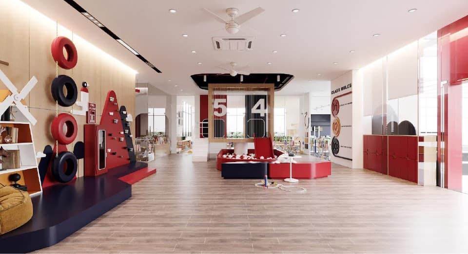 Trường mới nên cơ sở vật chất hiện đại lắm ạ . Môi trường sạch sẽ và an toàn cho các bạn nhỏ học tập bà vui chơi .